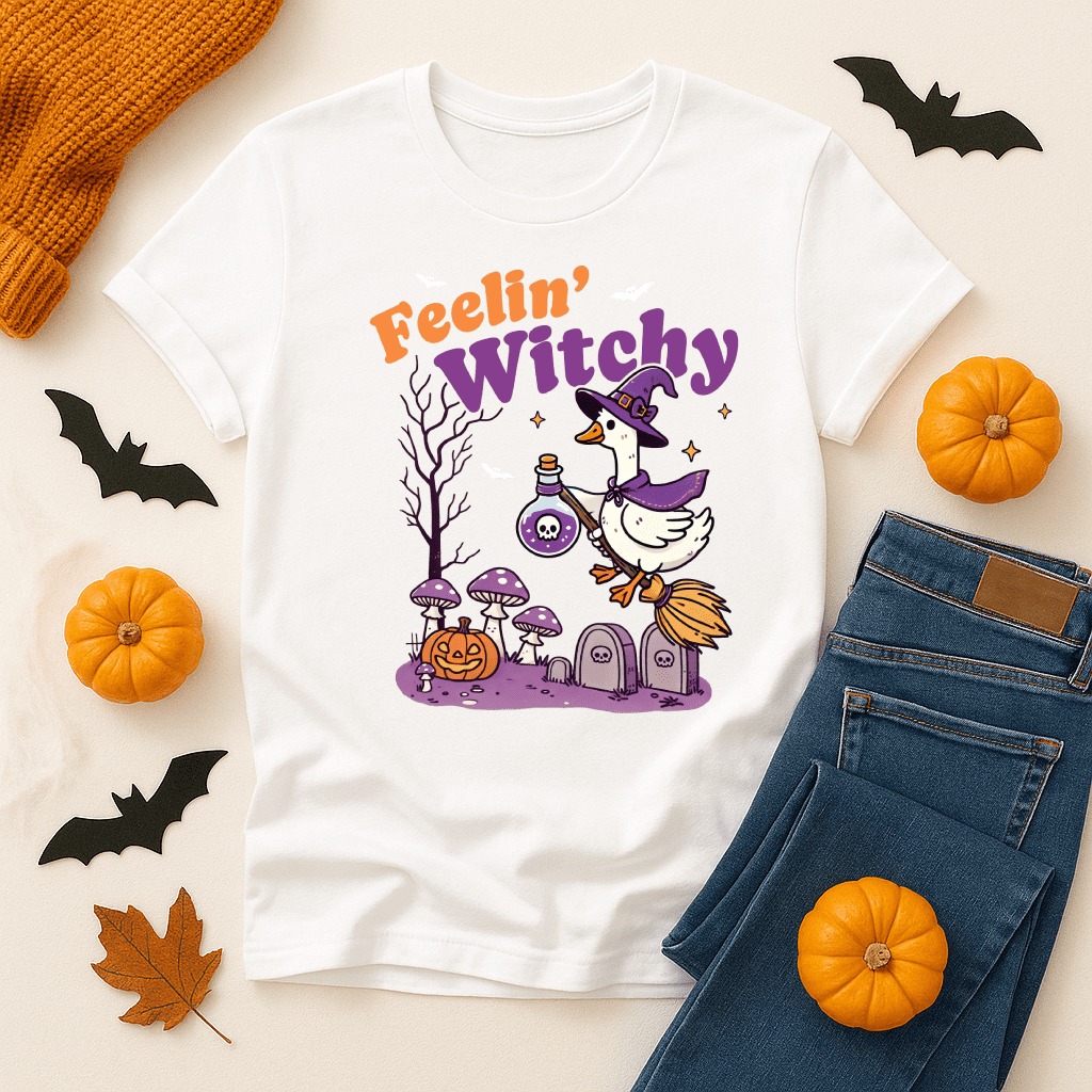 Feelin’ Witchy Halloween Shirt – Funny Goose Witch Graphic Tee