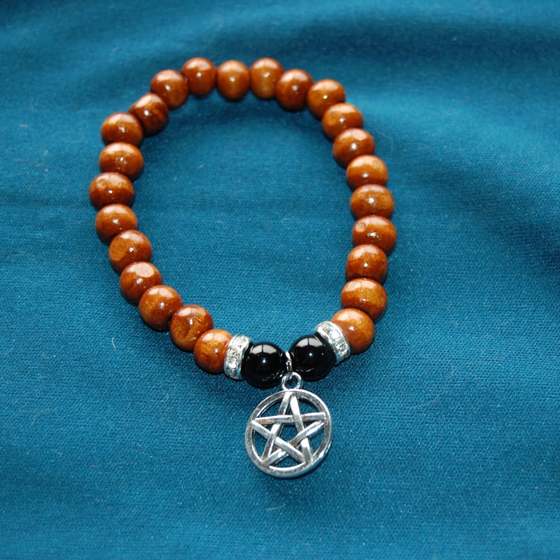Wood Bead Bracelet with Pentacle Charm
