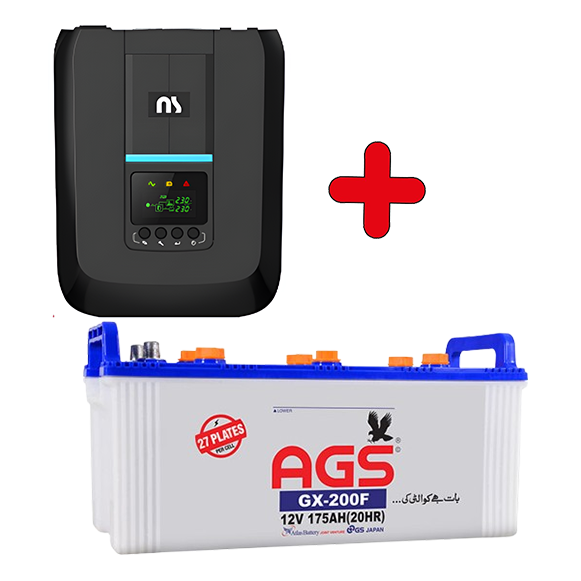 NS Pro 1202A 1000W Inverter UPS AGS Battery GX 200 175 AH 27 Plate, Package NS1-wos