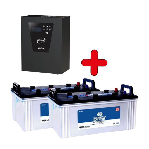 Homage HVS-2414SCC Vertex Solar UPS 2400VA/1800Watts/24V DAEWOO Battery (2 batteries )DIB-200 (175Ah), Package