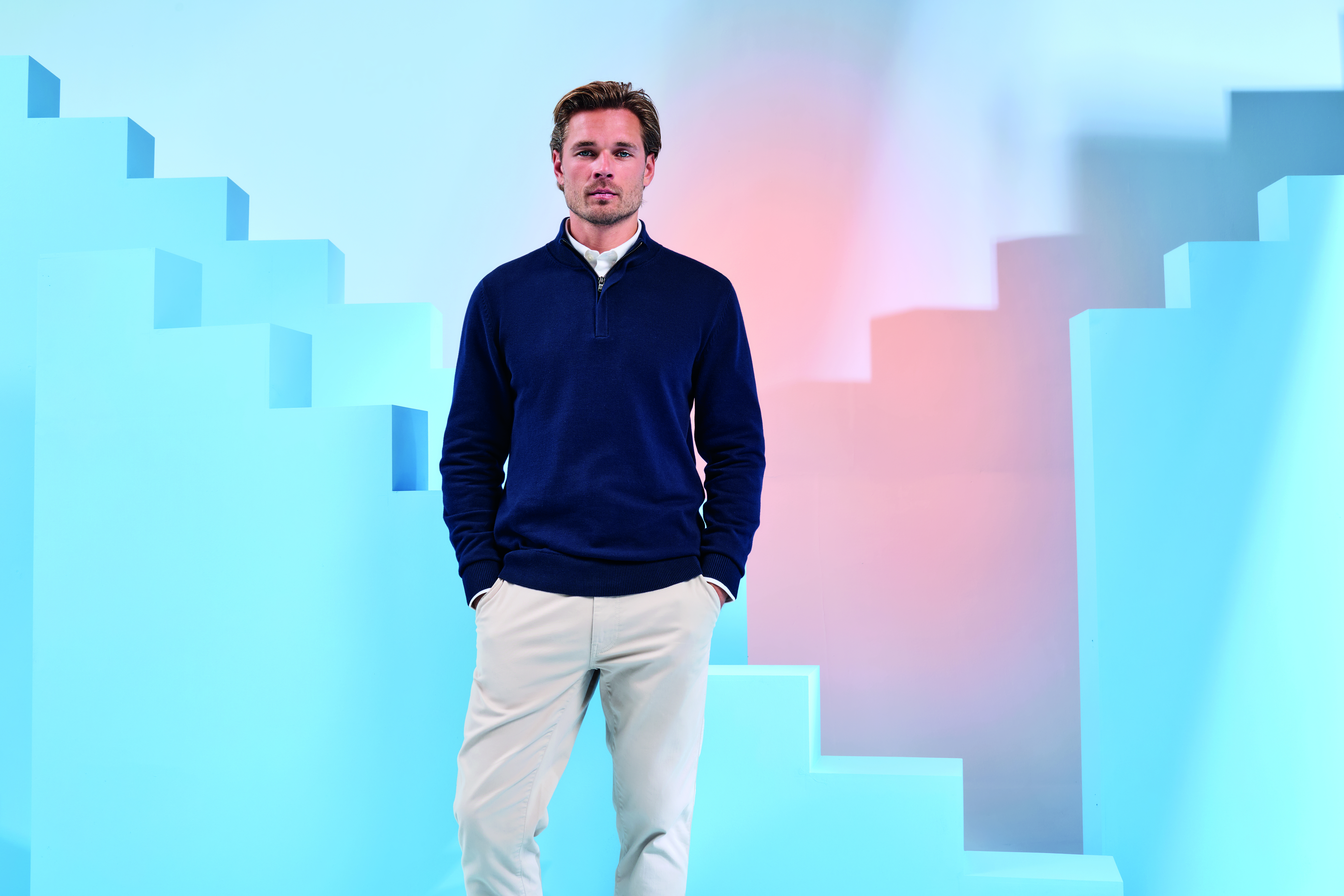 Asquith and Fox – AQ048 – MENS COTTON 1/4 ZIP SWEATER