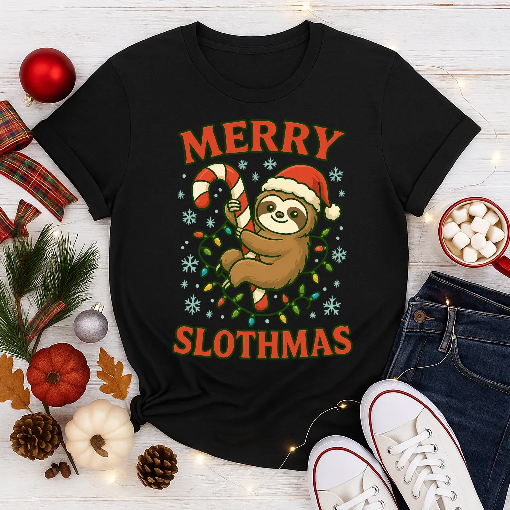 Merry Slothmas Shirt – Funny Sloth Christmas Tee – Cute Holiday Animal T-Shirt – Lazy Christmas Humor Shirt
